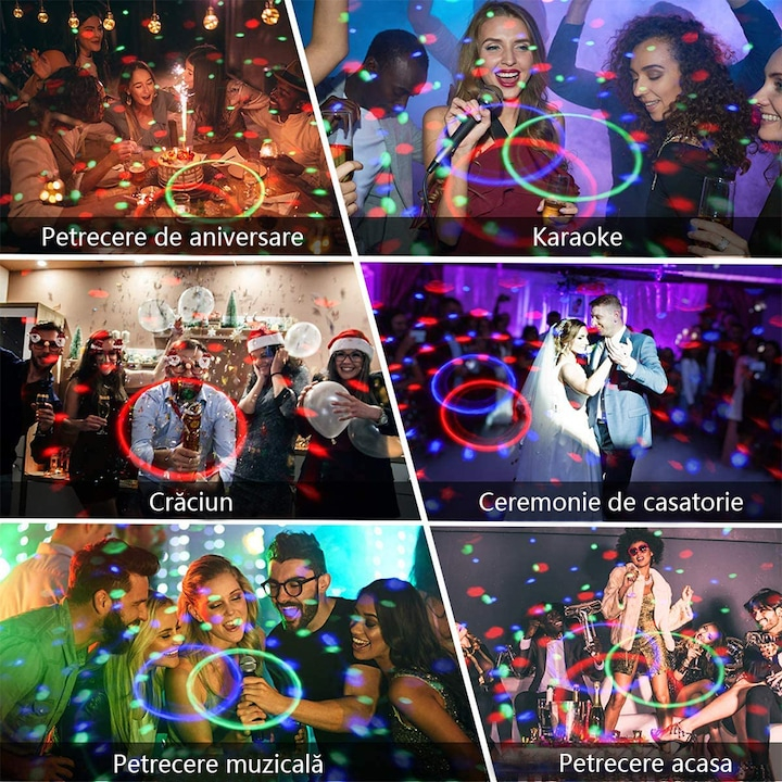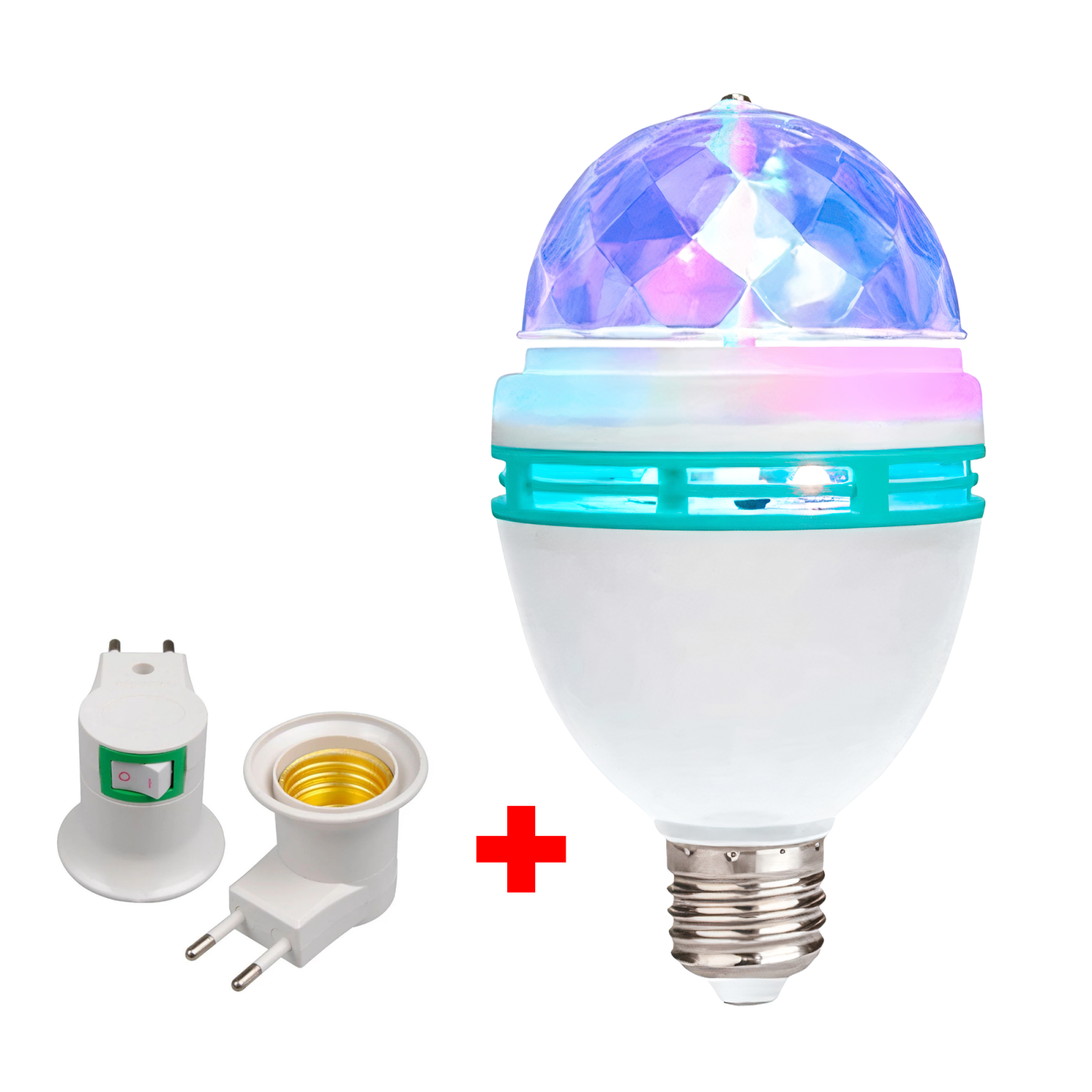 Bec rotativ disco cu soclu E27, este un dispozitiv de iluminat cu LED care creează efecte de lumină dinamice și multicolore, imitând atmosfera dintr-o discotecă. Este conceput pentru a se înșuruba într-o dulie standard de tip E27, la fel ca un bec obișnuit, ceea ce îl face ușor de instalat și utilizat.
